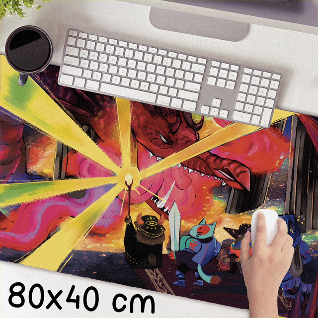 Tapis de souris de 80 × 40 cm, avec une épaisseur de 4 mm. Les bords sont cousus pour une meilleure durabilité, et la base est antidérapante afin d’assurer une bonne stabilité lors de l’utilisation.